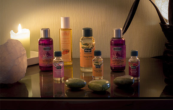 Weiterhin verwenden wir von namhaften Herstellern exklusive Aroma-Öle ,um ihnen eine Vielfalt an verschiedenen Aroma-Massageölen bei der Massage bieten zu können.